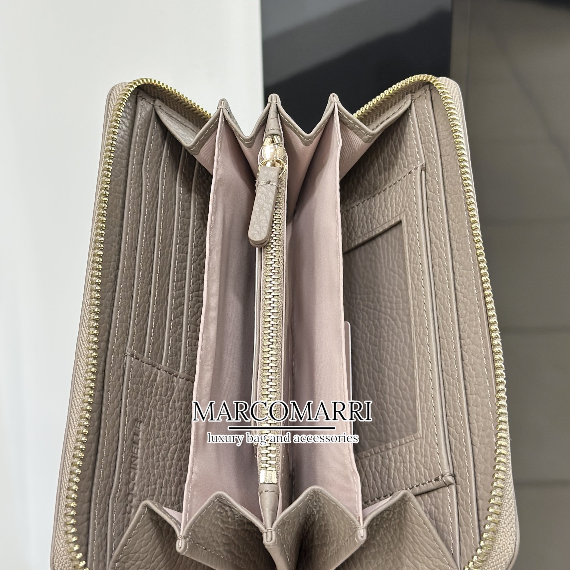 Questo portafoglio con zip della linea Metallic dalle ampie dimensioni è impreziosito dal logo Coccinelle in metallo. Il suo spazio è organizzato al meglio per riporvi il necessario con ordine e cura.