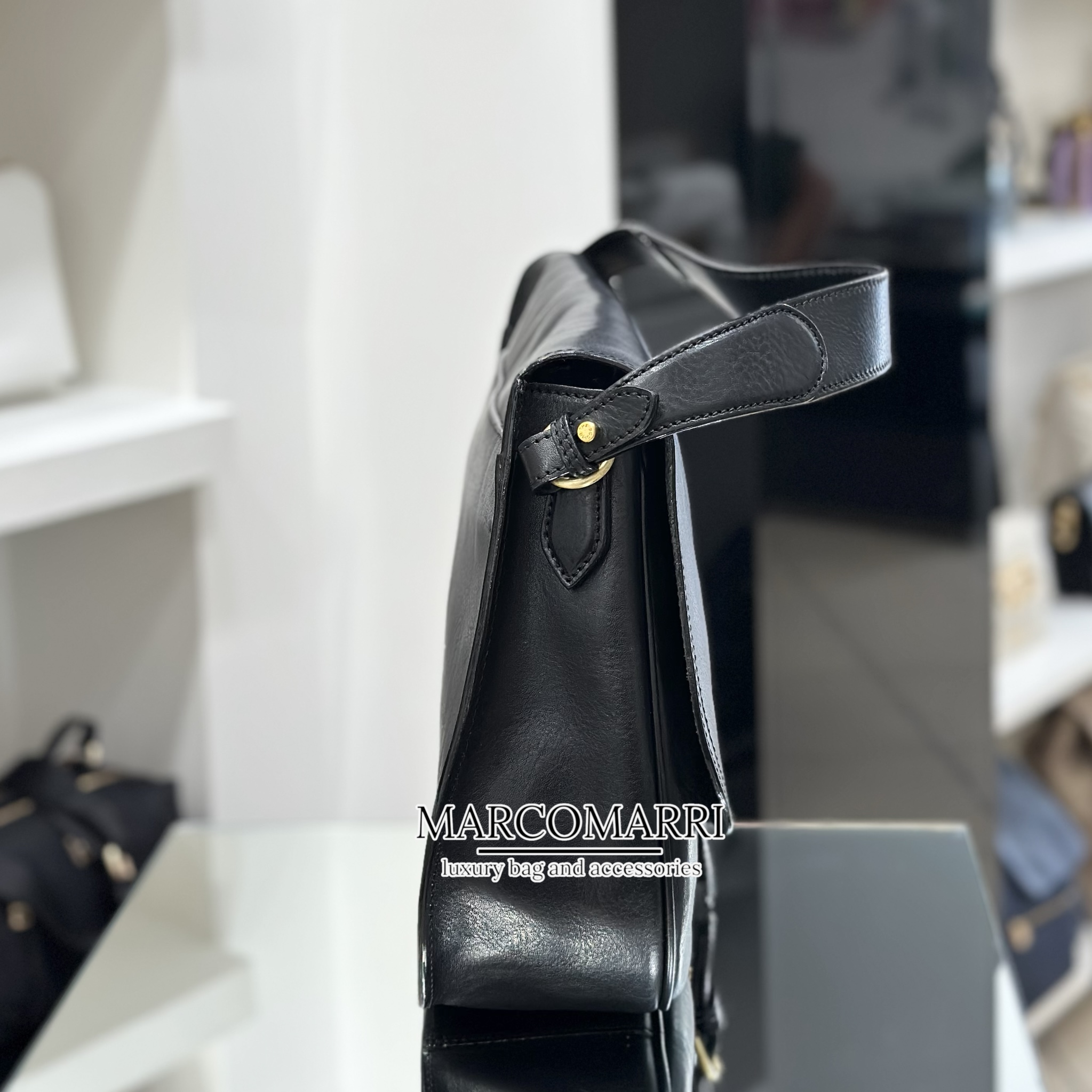 Interno sfoderata con ampia tasca e con tracolla logata regolabile.