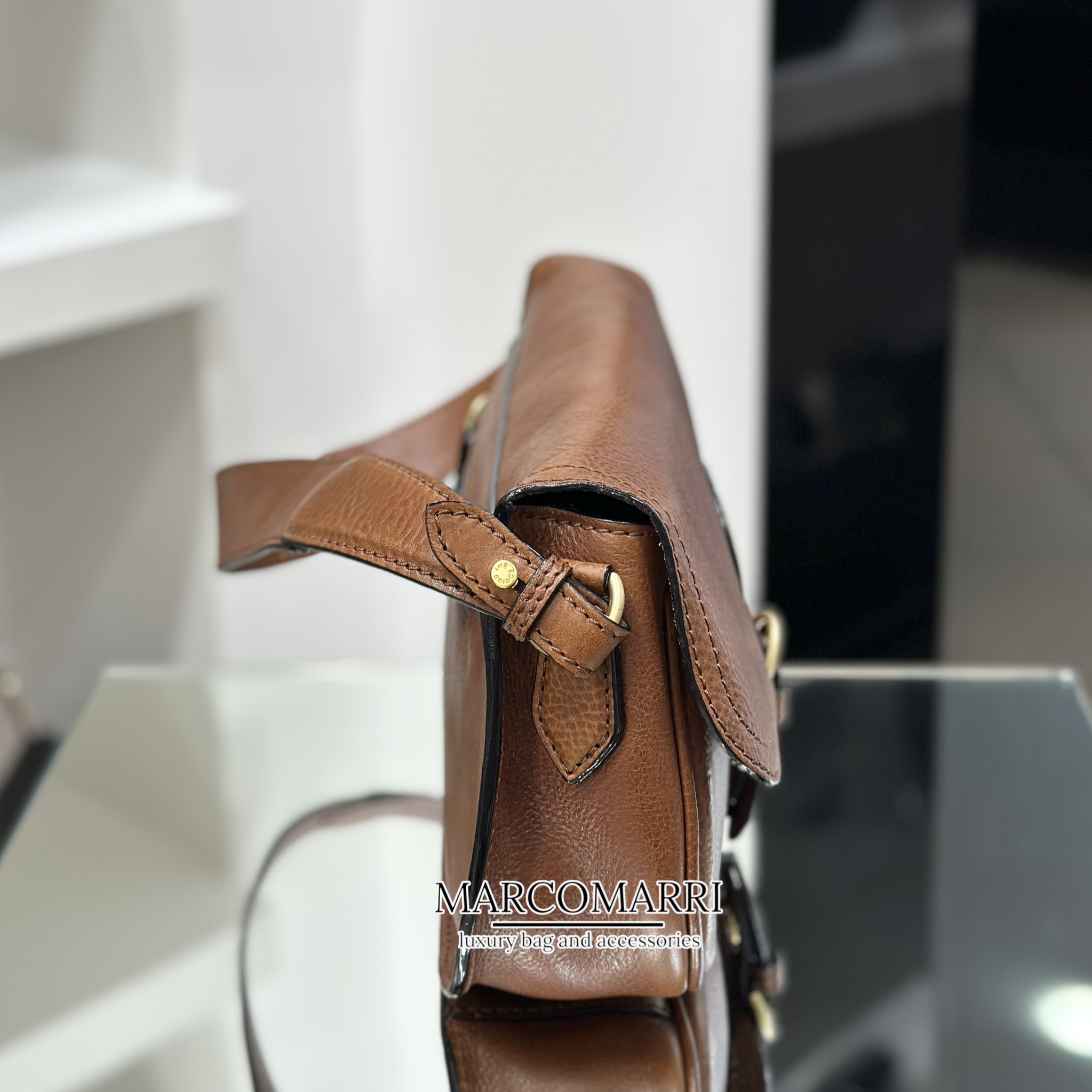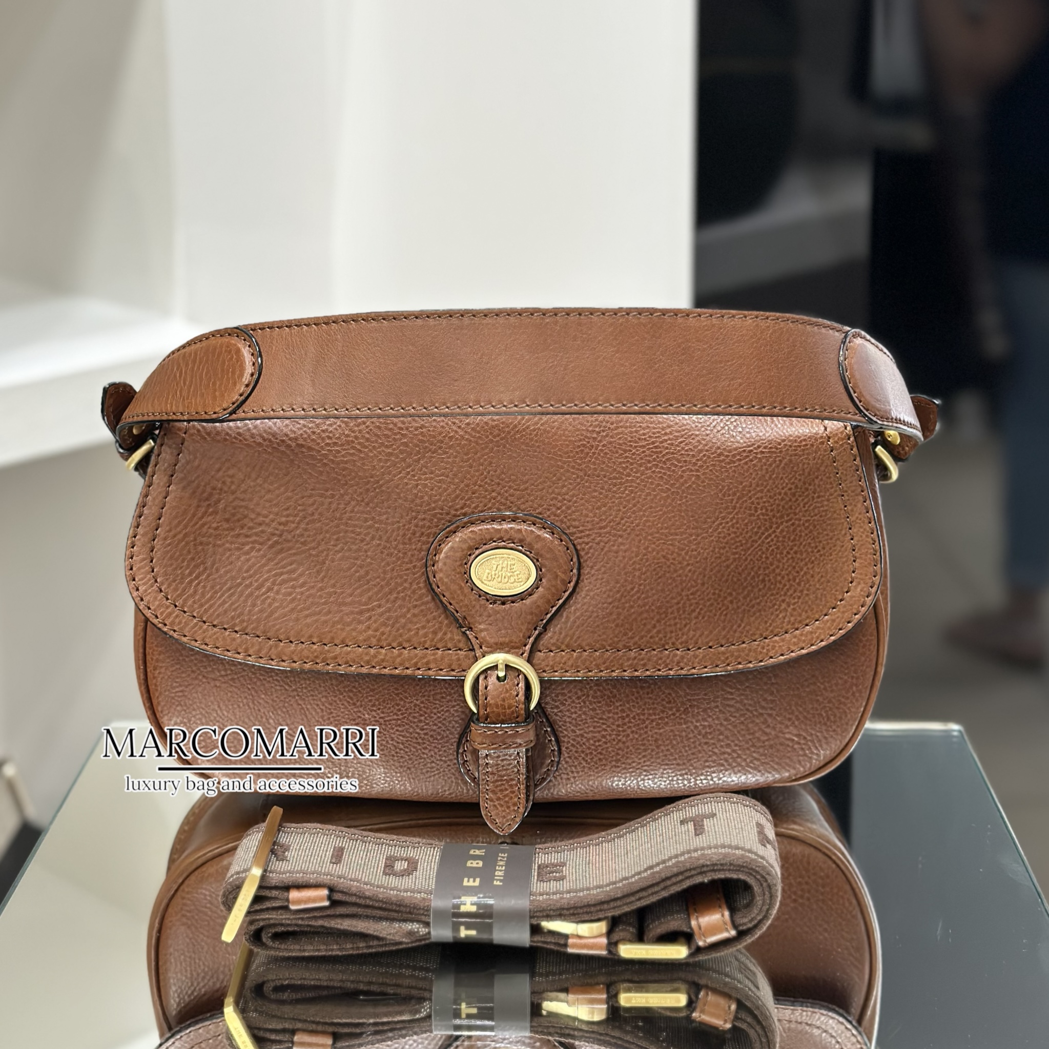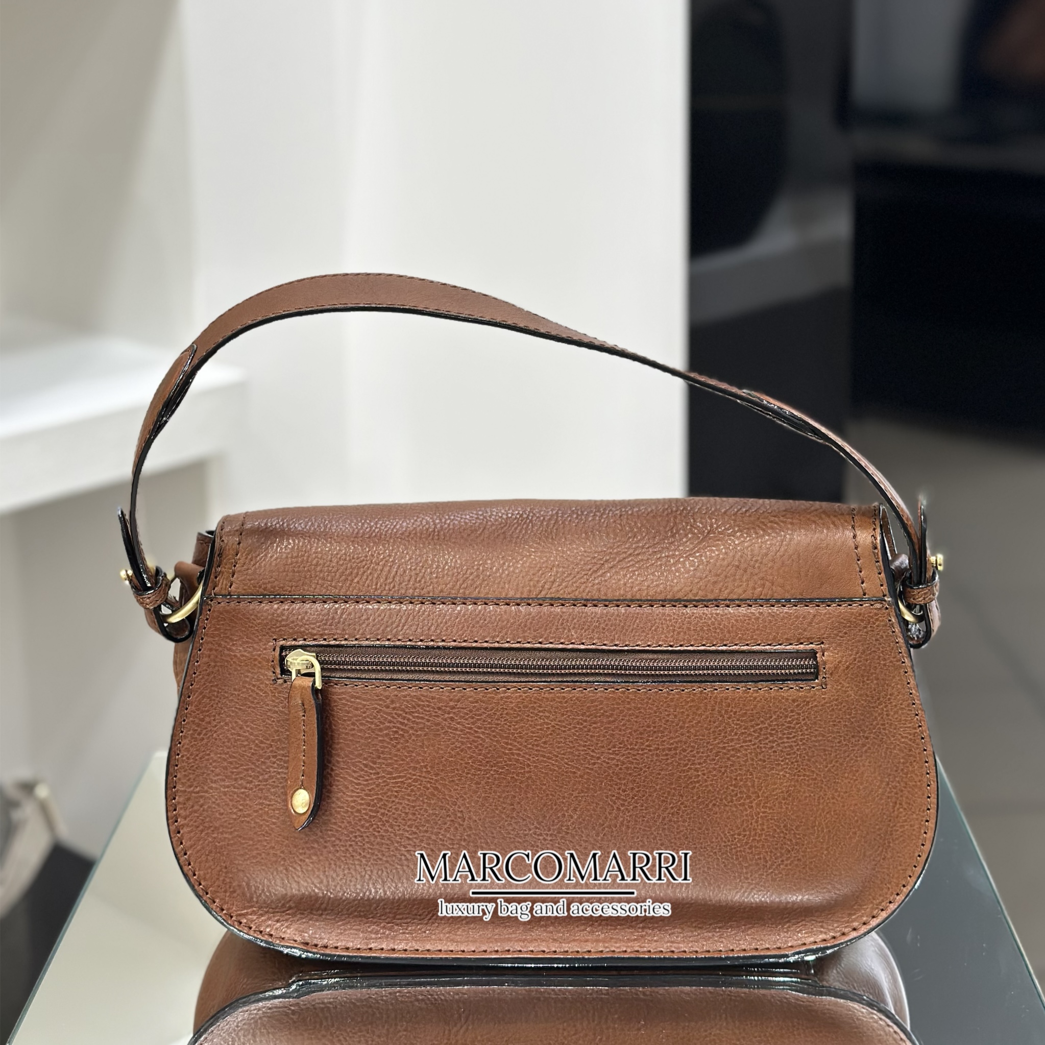 Borsa a spalla in pelle martellata con manico removibile e tracolla in tessuto logato.