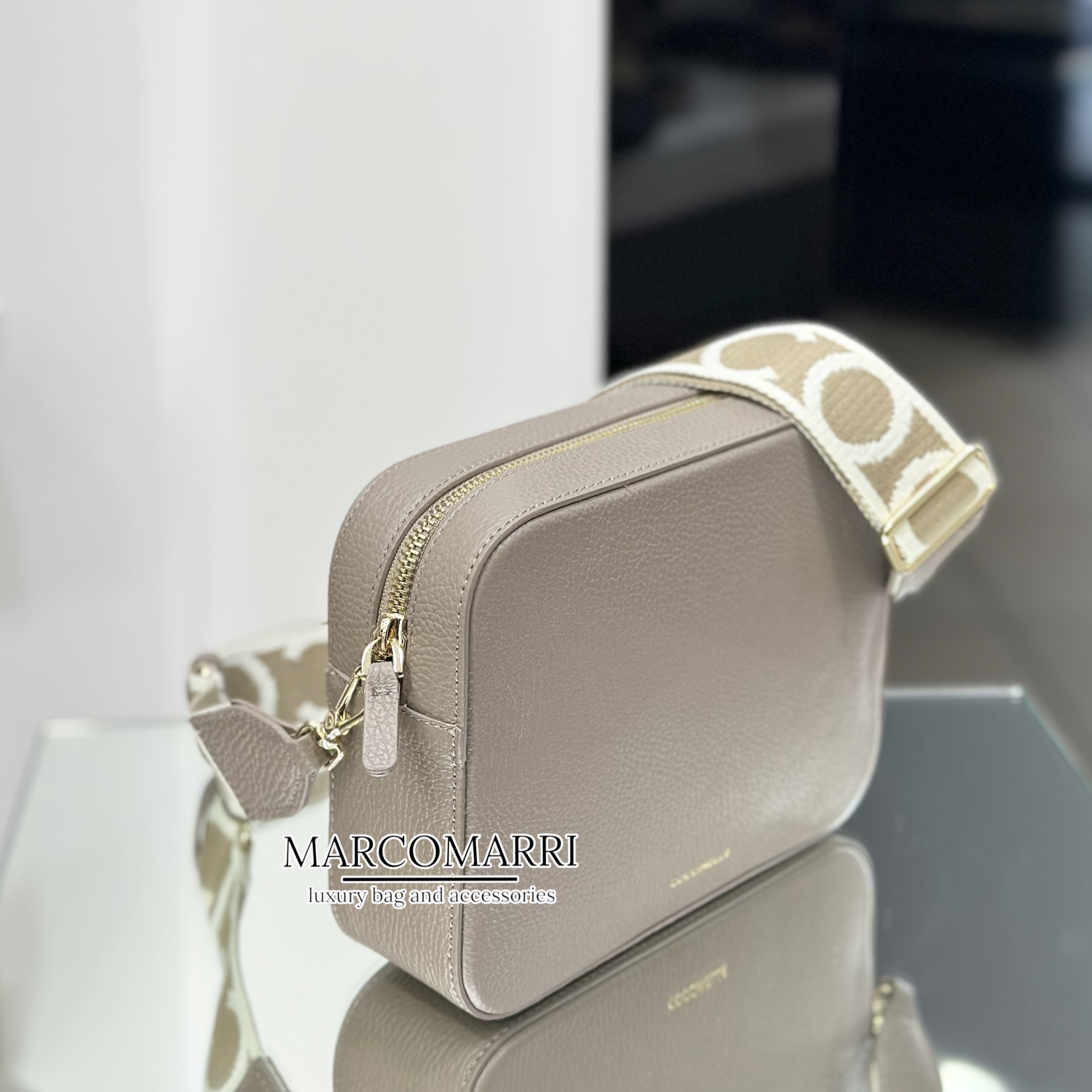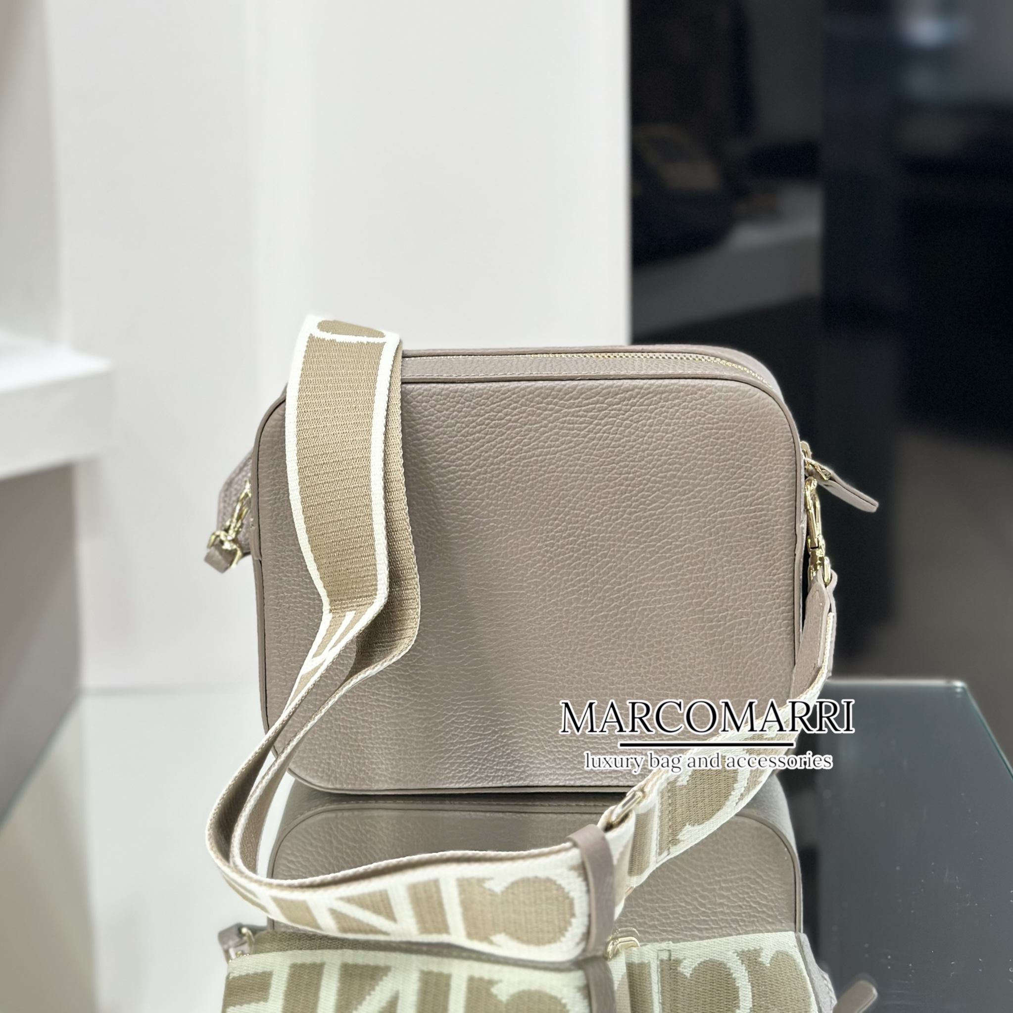 La borsa è caratterizzata da una tracolla in tessuto regolabile e removibile, che permette di indossarla comodamente a spalla o crossbody, rendendo ogni outfit versatile e alla moda. L’interno in tessuto è funzionale e spazioso, perfetto per organizzare portafoglio, smartphone e piccoli accessori, mentre la chiusura con zip assicura sicurezza e praticità.