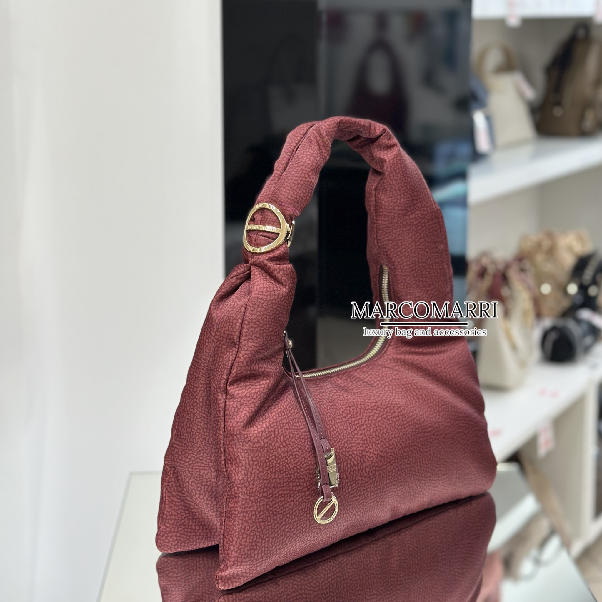 - Chiusura esterna con zip metallo e doppio cursore, tirazip in pelle con elementi Decorativi a vite e placchetta logati